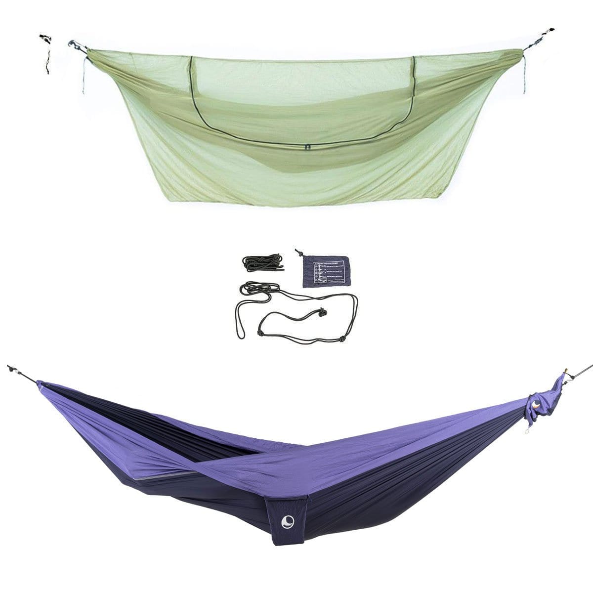 Ticket To The Moon er testet i alle klima over hele verden siden 1996, fallskjerm hengekøyen ble laget av reisende for reisende. Hengekøyen er ultralett og tar lite plass i sekken. En ideell beskyttelse mot insekter og små krypdyr, den kan lett erstatte teltet ditt: lett vekt og tåler mye.