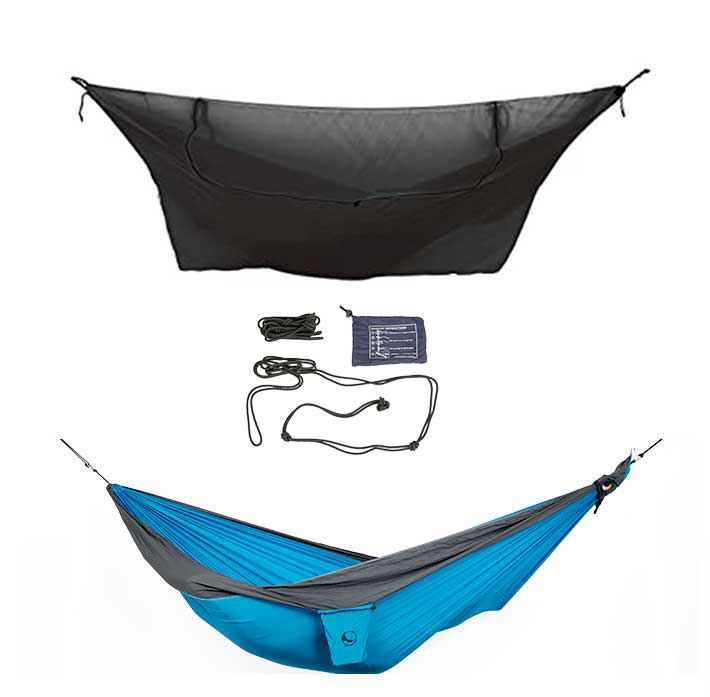 Ticket To The Moon er testet i alle klima over hele verden siden 1996, fallskjerm hengekøyen ble laget av reisende for reisende. Hengekøyen er ultralett og tar lite plass i sekken. En ideell beskyttelse mot insekter og små krypdyr, den kan lett erstatte teltet ditt: lett vekt og tåler mye.